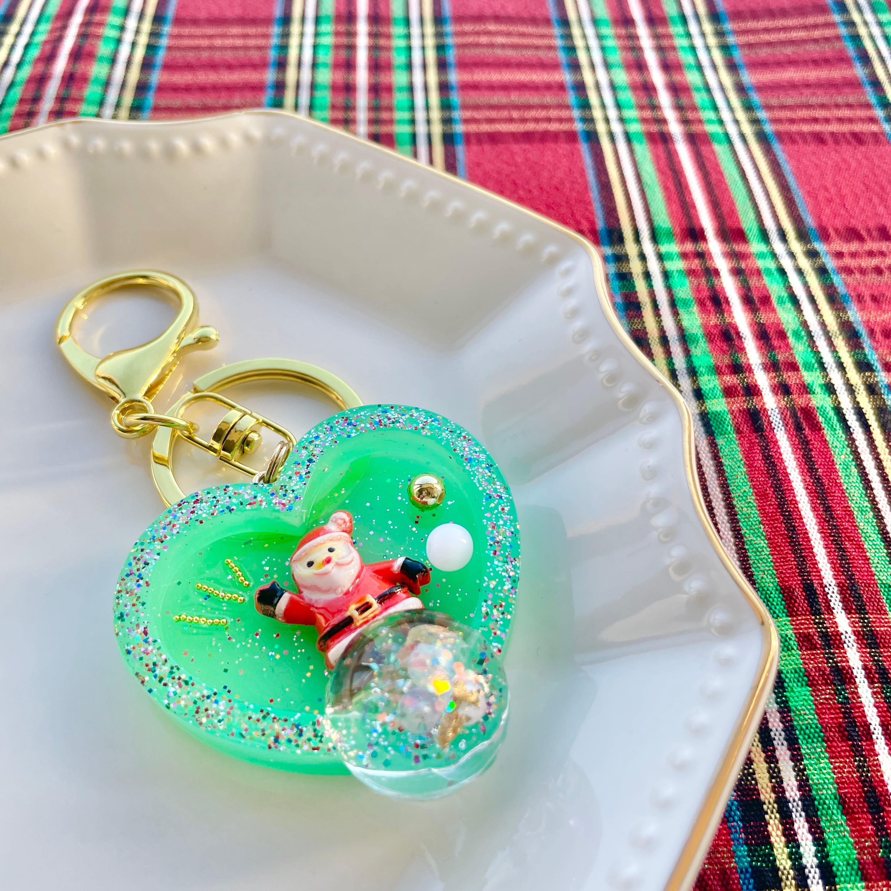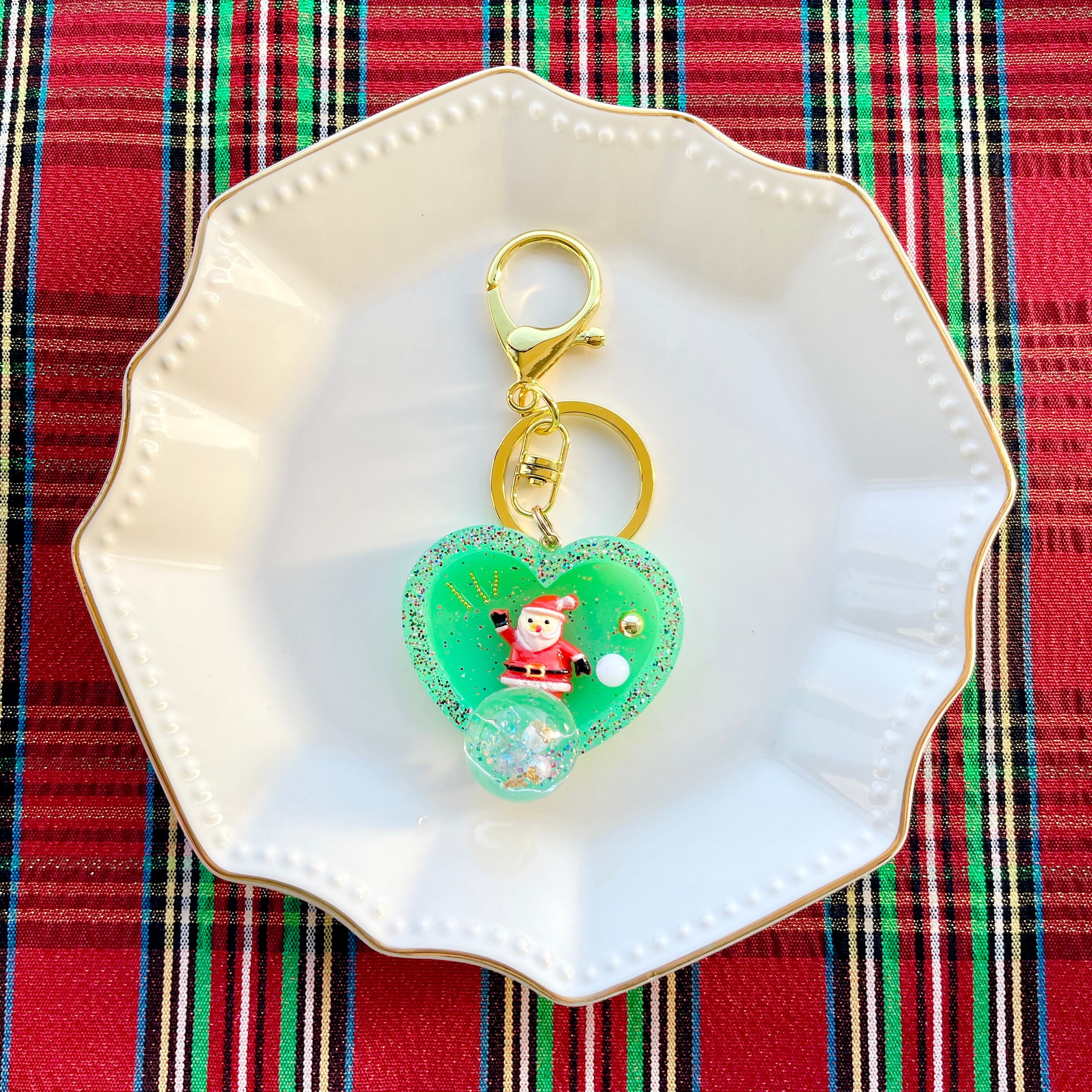 サンタの休日 緑ハートのキーホルダー/キーリング/バッグチャーム【クリスマス】