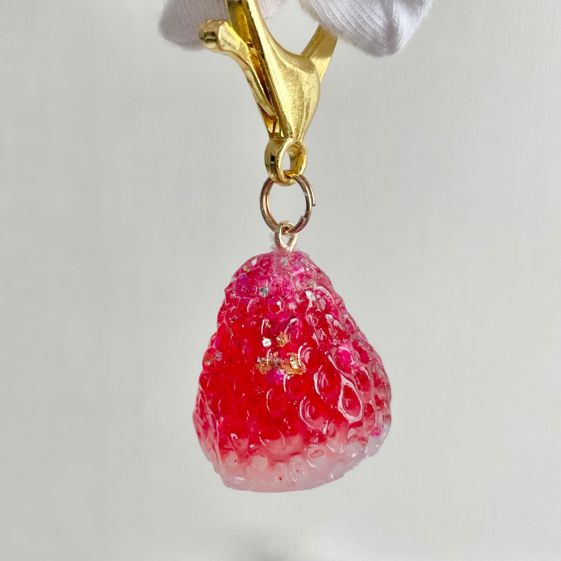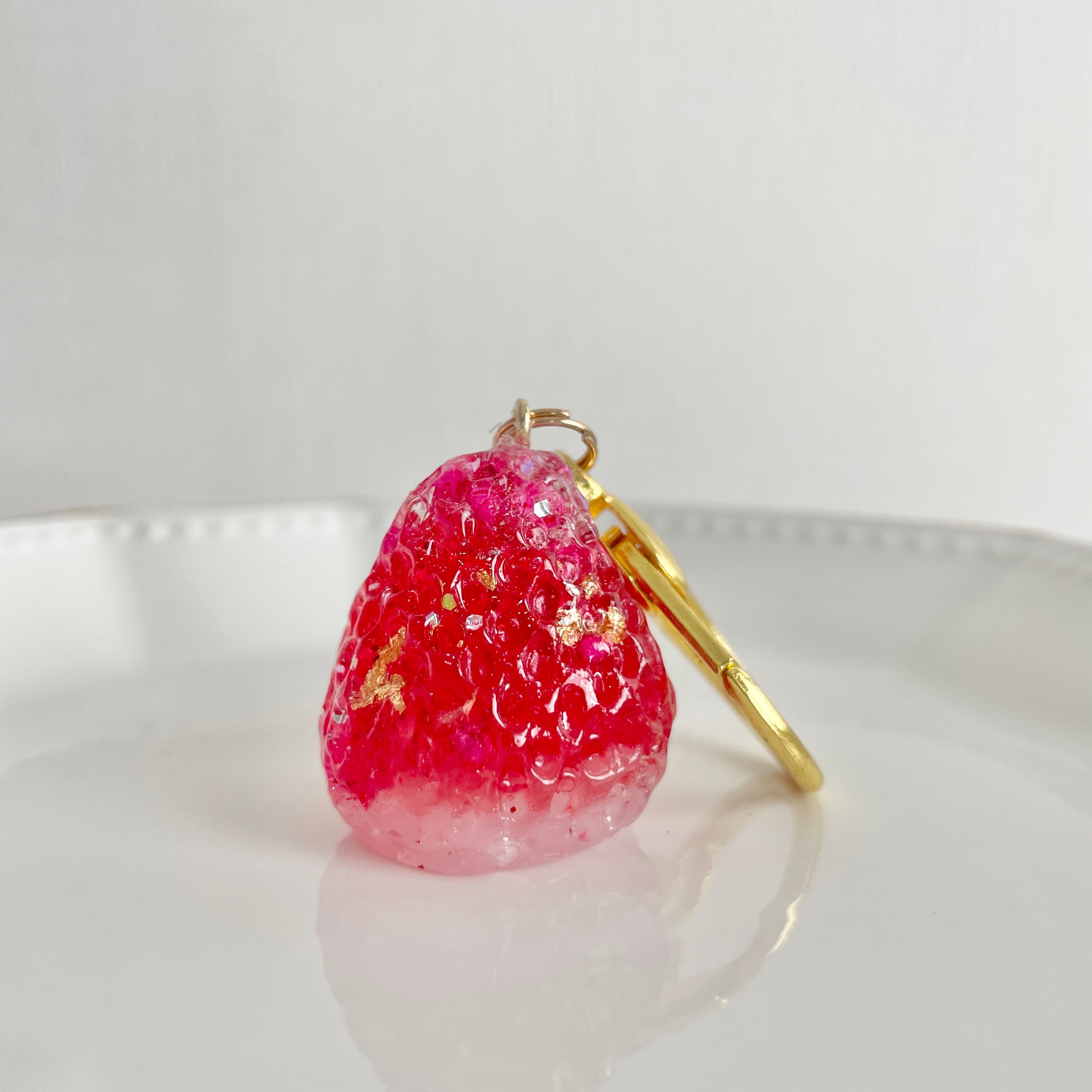 一粒で存在感大な、キラキララメをとじこめたいちごのキーホルダーです。