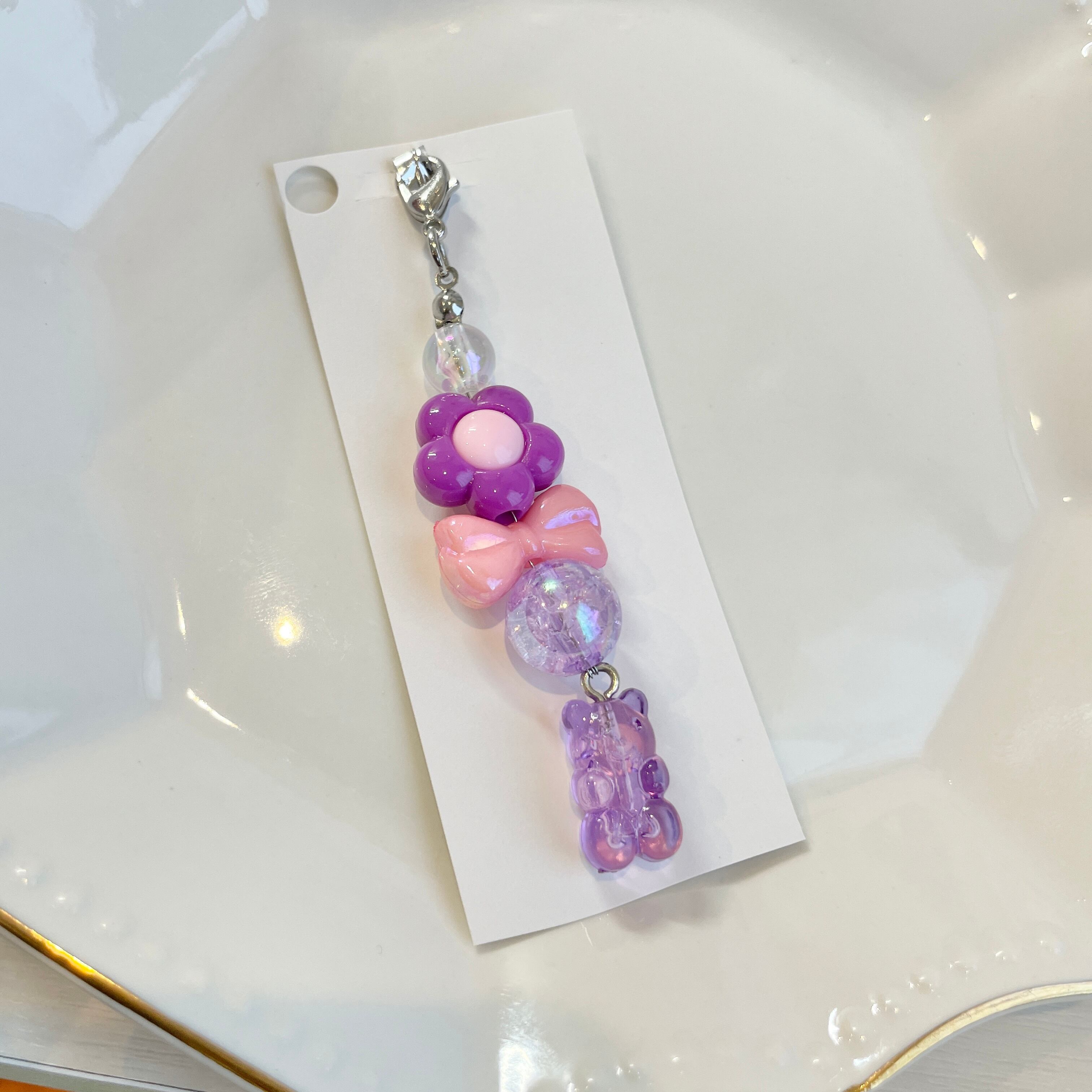 アメリカンポップ フラワービーズチャーム 紫のくまさん