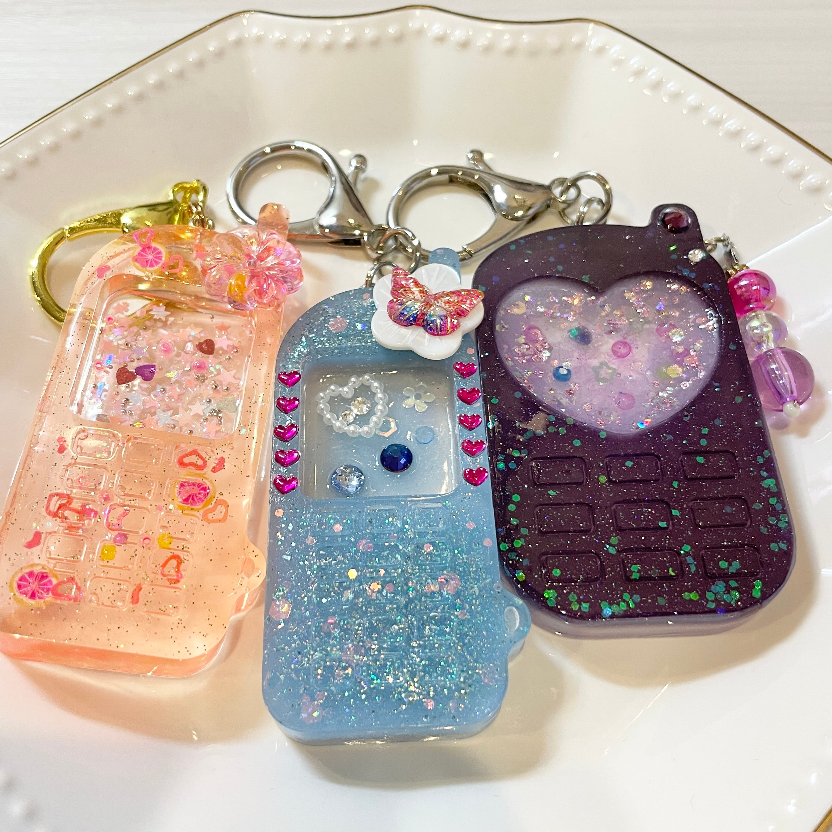 どの色にするか迷っちゃうかわいいガラケーのキーホルダーができました。