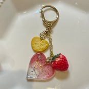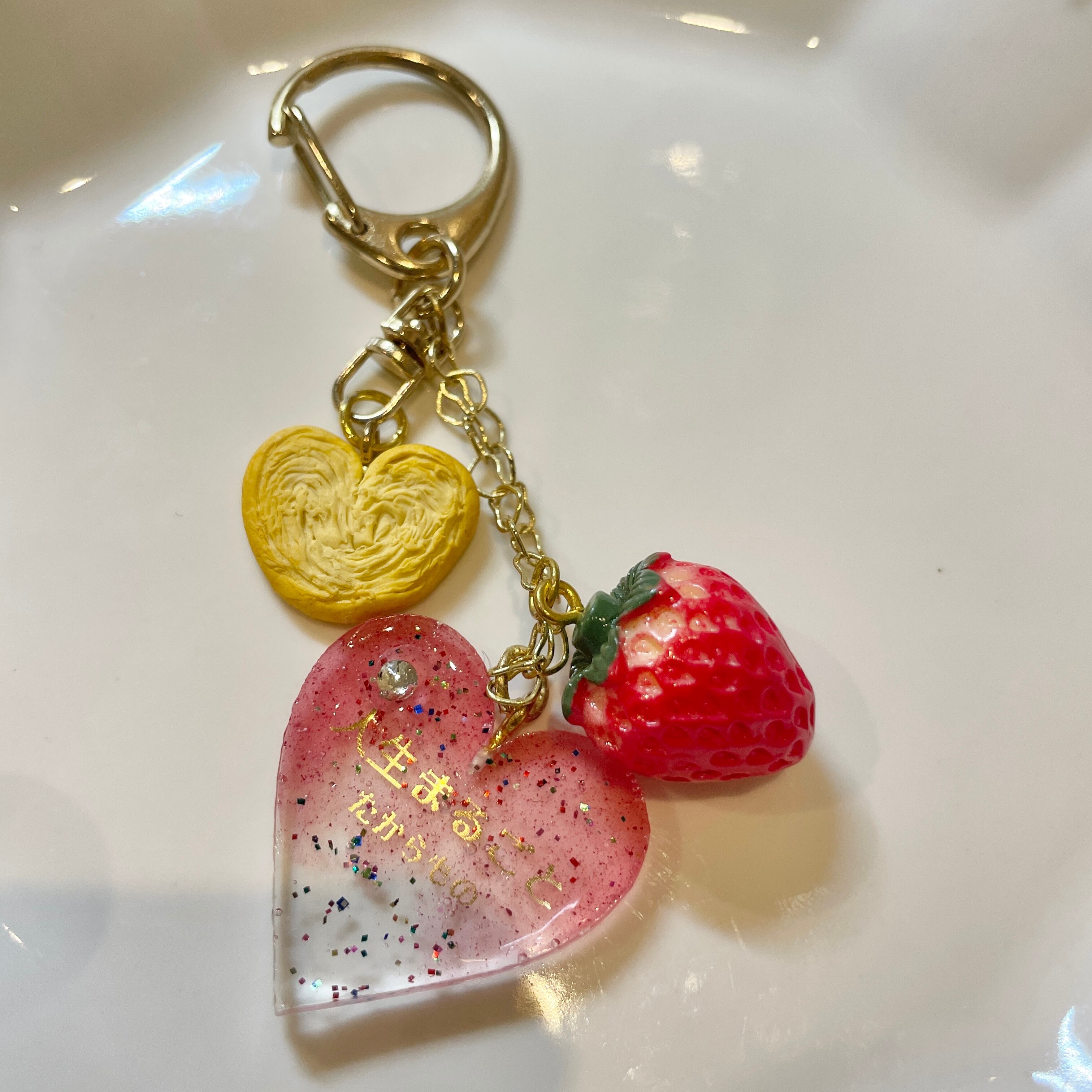 「人生まるごとたからもの」という文字が入ったキラキラハートのキーホルダーです。