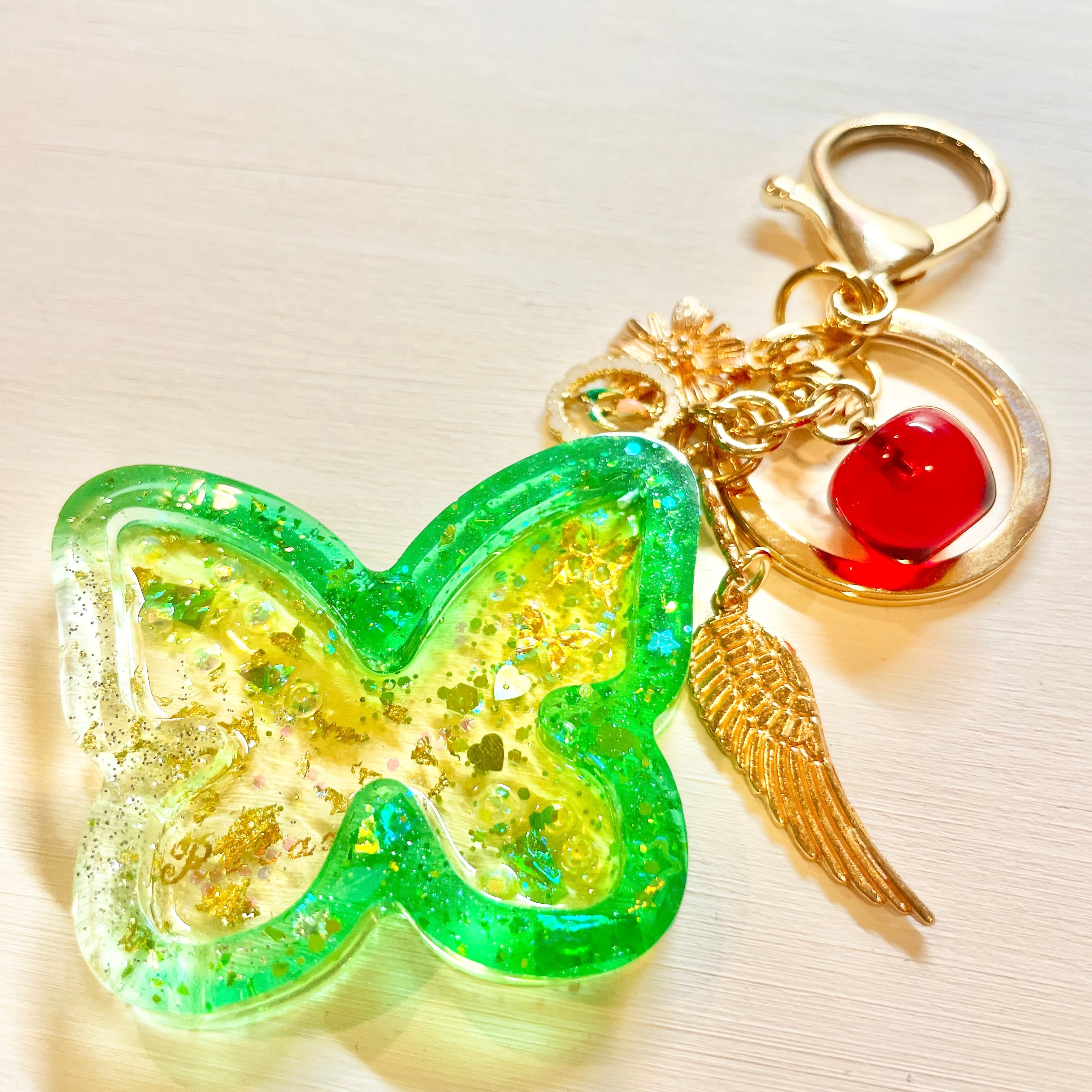 森の中の蝶 レジンキーホルダー 【グリーン・緑色】