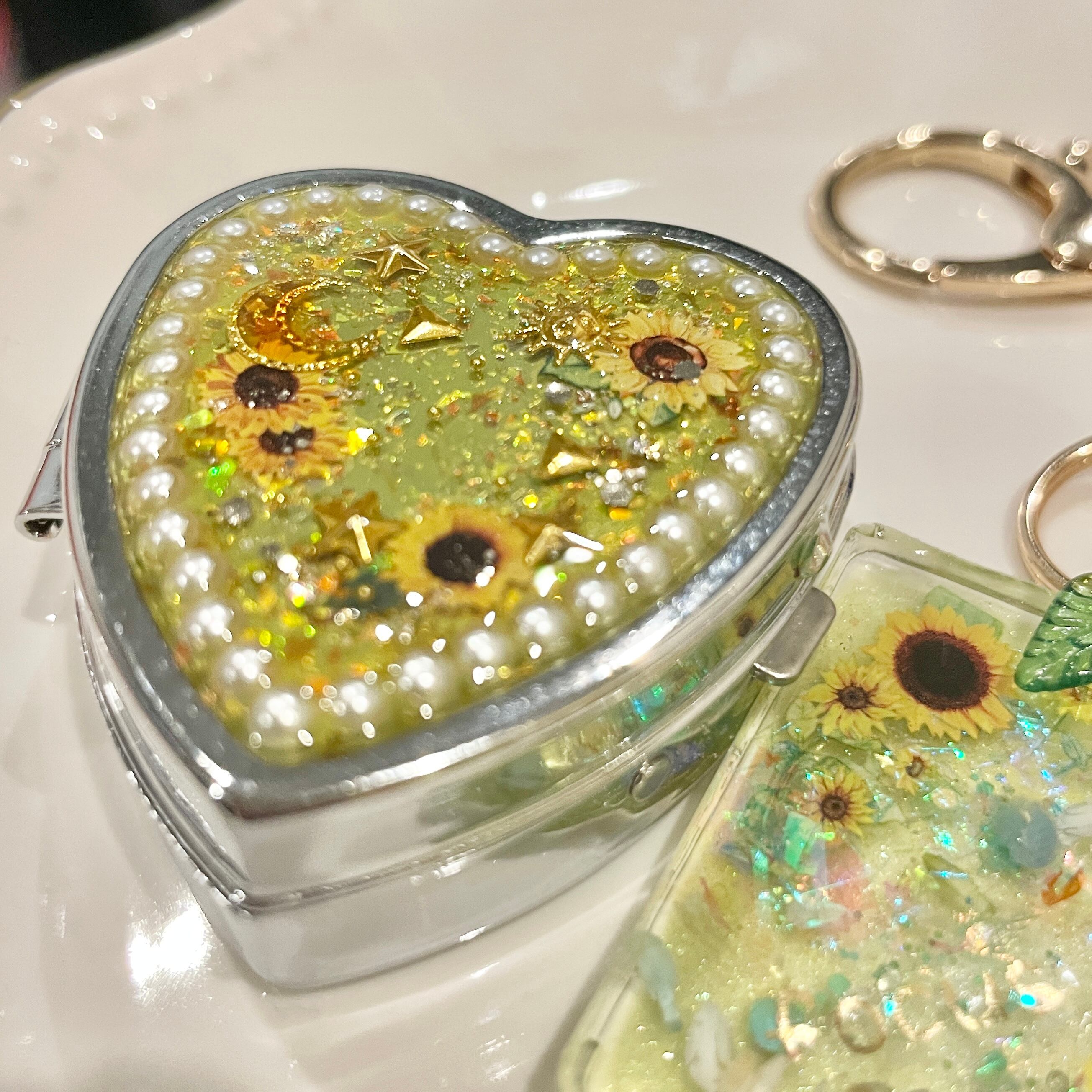 ひまわりパール♡ハート型の小物入れ(ミラー缶ケース)