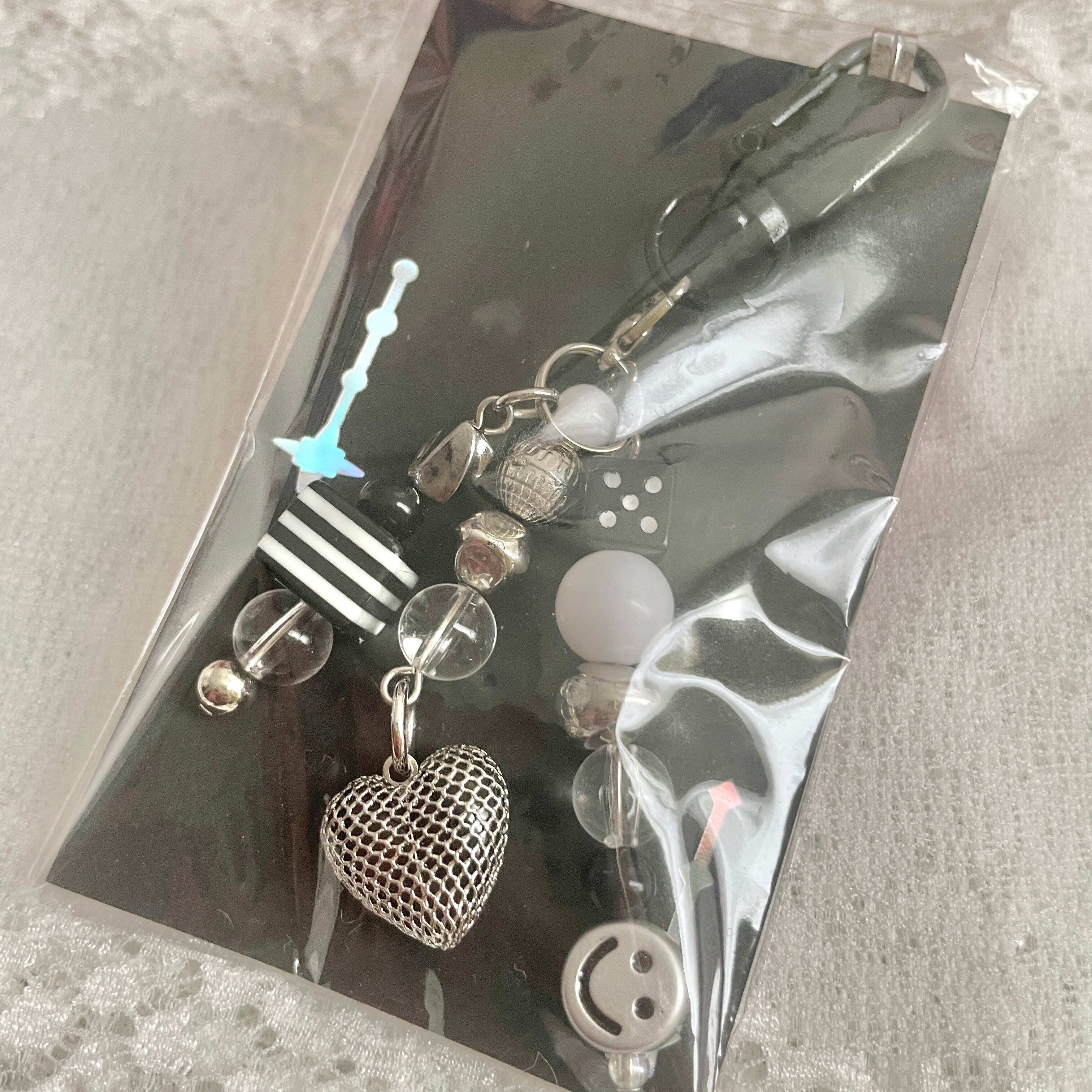 黒をモチーフにしたシルバービーズキーホルダー です(^^)