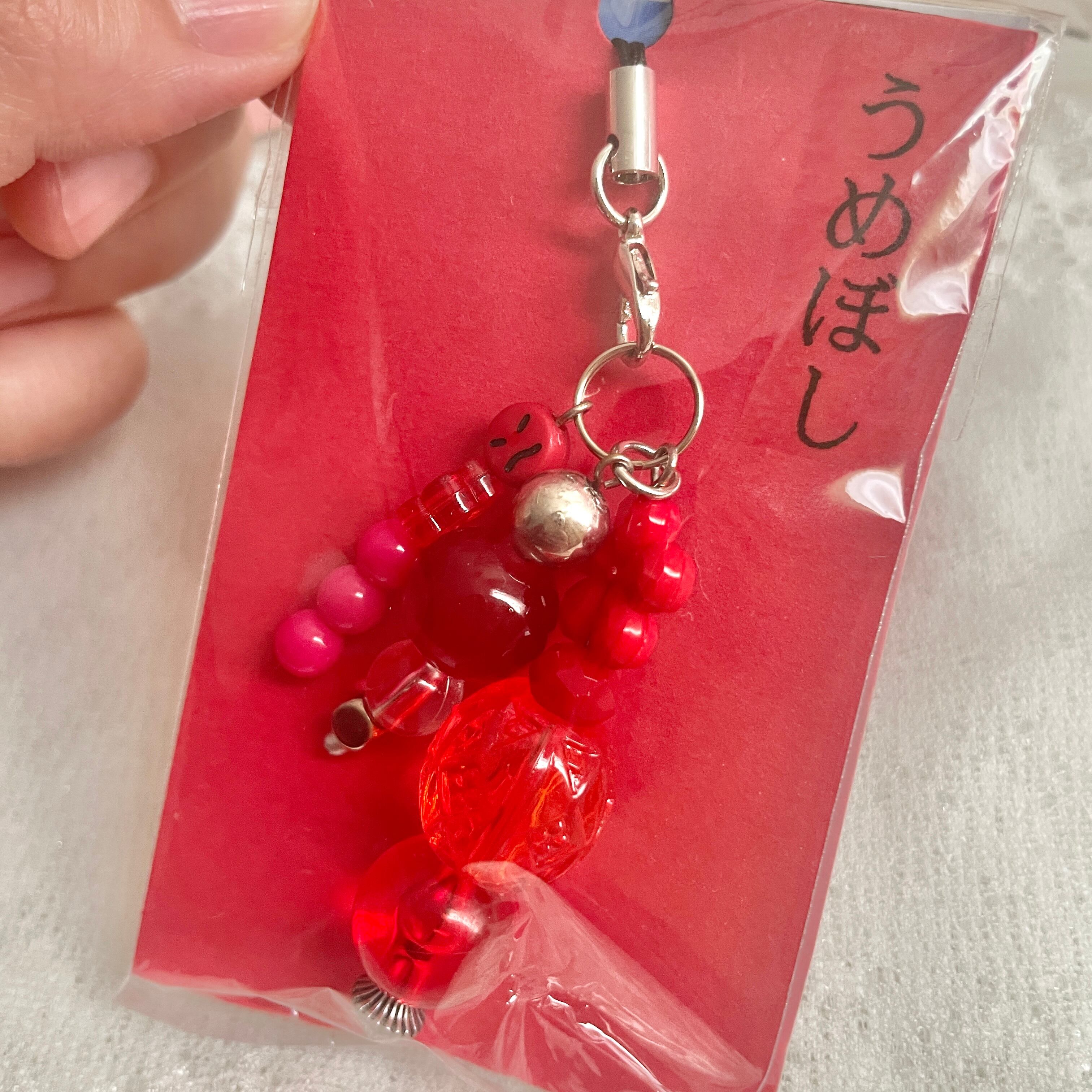 うめぼしをモチーフにした赤いビーズキーホルダー です。