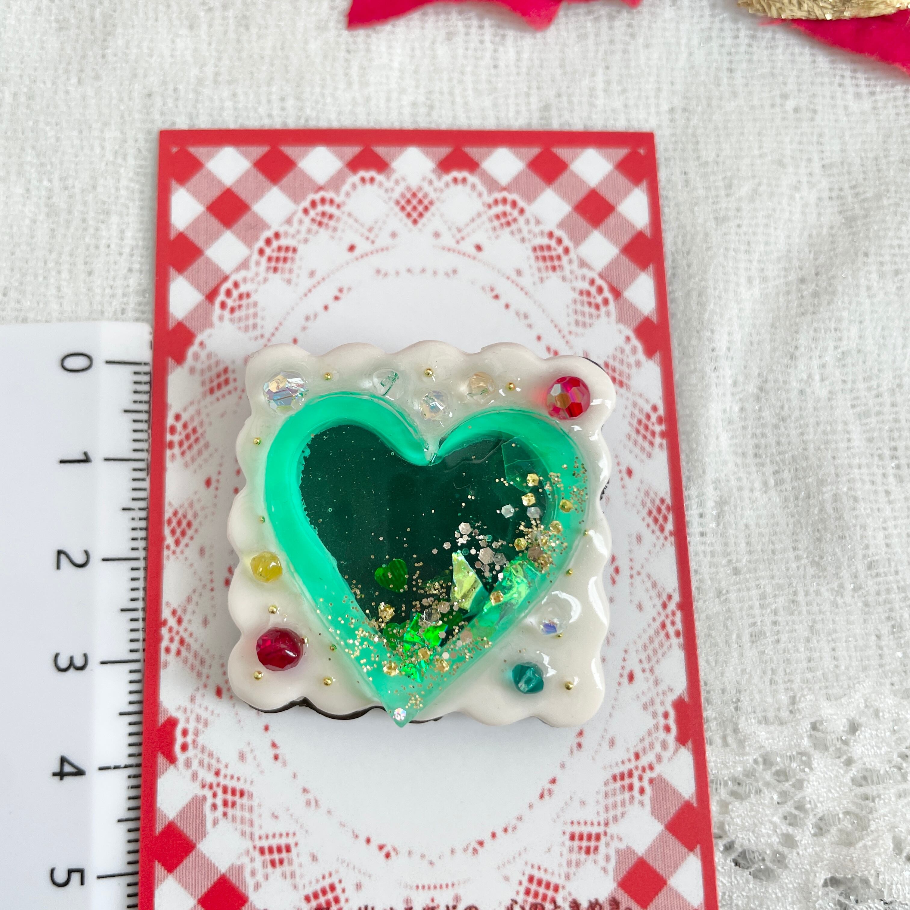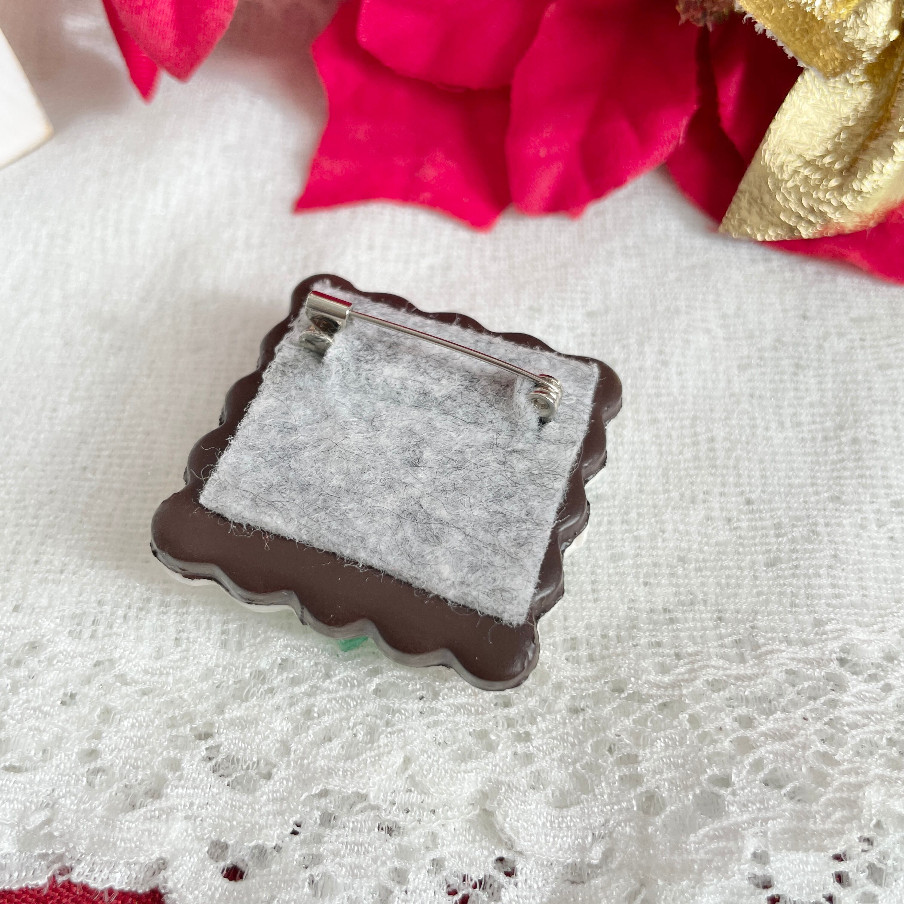 クリスマスの輝きを感じる、ステンドグラスクッキーみたいなブローチを作りました。